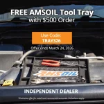 For a limited time, commercial accounts receive a free AMSOIL poly vinyl tool tray with their order of $500 or more when they use code TRAY326 at checkout. The promotion runs March 4-24, 2026.